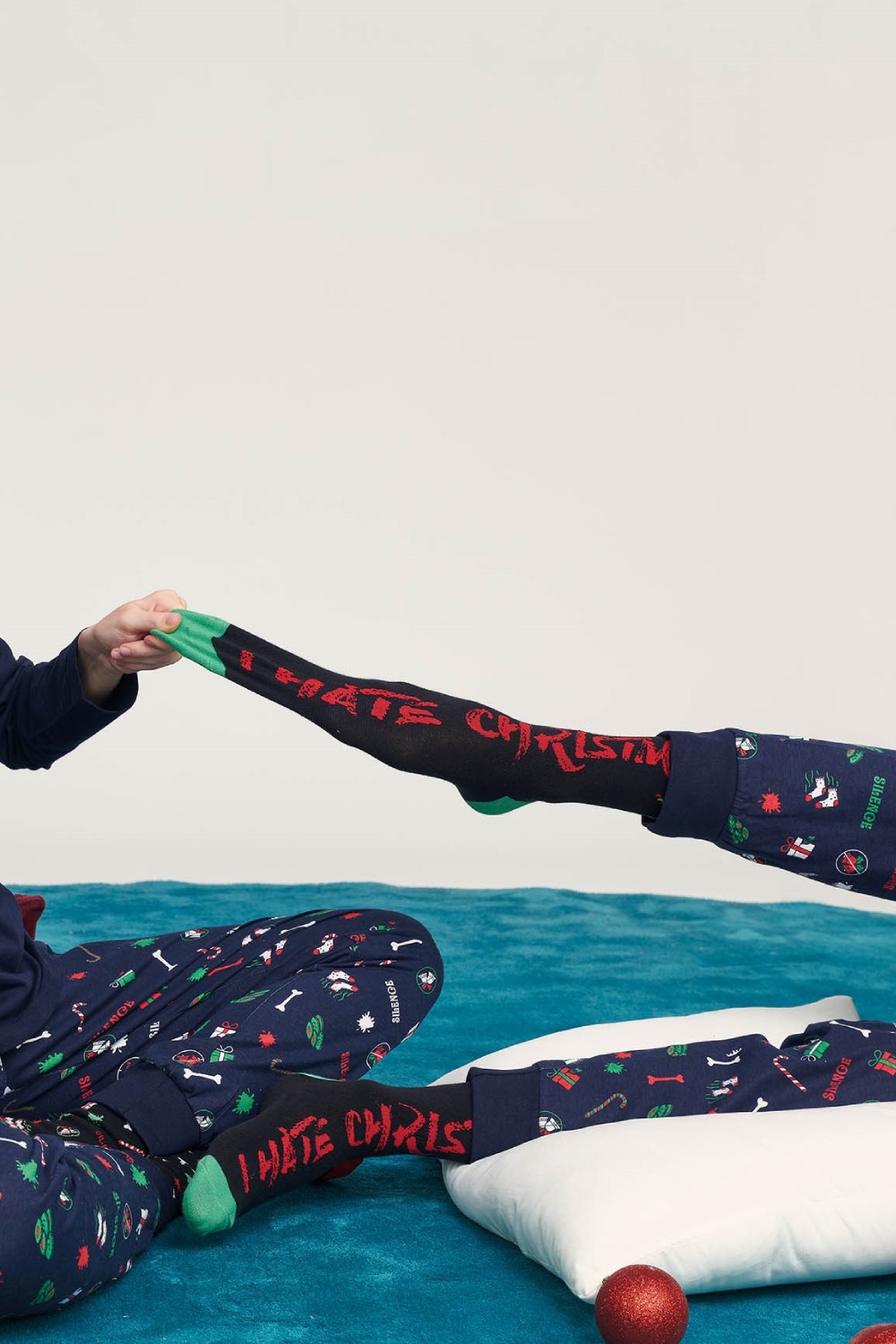 Ανδρικές Κάλτσες MuyDemi X-Mas “I Hate Christmas” με εφαρμογή που αγκαλιάζει το πόδι. Η συσκευασία περιέχει τρία ζευγάρια κάλτσες σε διαφορετικά σχέδια.