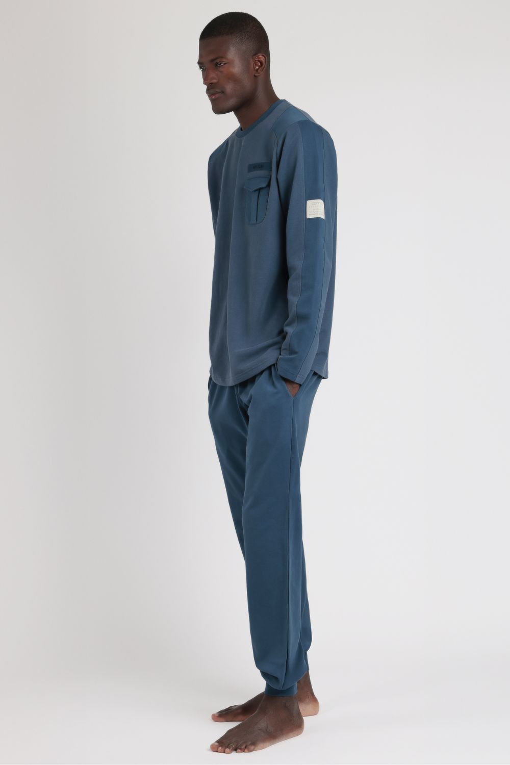 Ανδρική πιτζάμα Admas “New Plan” από 100% βαμβάκι, ιδανική για άνεση και καθημερινή χαλάρωση. Η μπλούζα διαθέτει πρακτική τσέπη στο στήθος και άνετη εφαρμογή, ενώ το παντελόνι έχει κορδόνι στη μέση για καλύτερη ρύθμιση και λάστιχο στους αστραγάλους για σταθερή και μοντέρνα γραμμή. Το φυσικό βαμβακερό ύφασμα προσφέρει απαλή αίσθηση στο δέρμα και διαπνοή, καθιστώντας την ιδανική επιλογή για όλες τις εποχές.