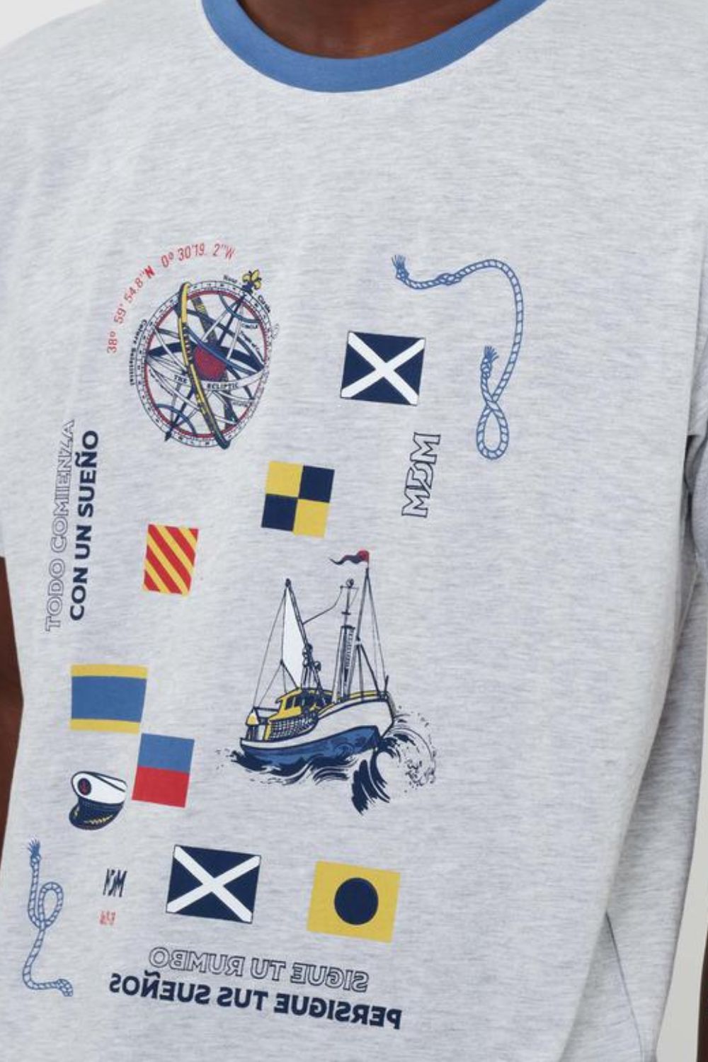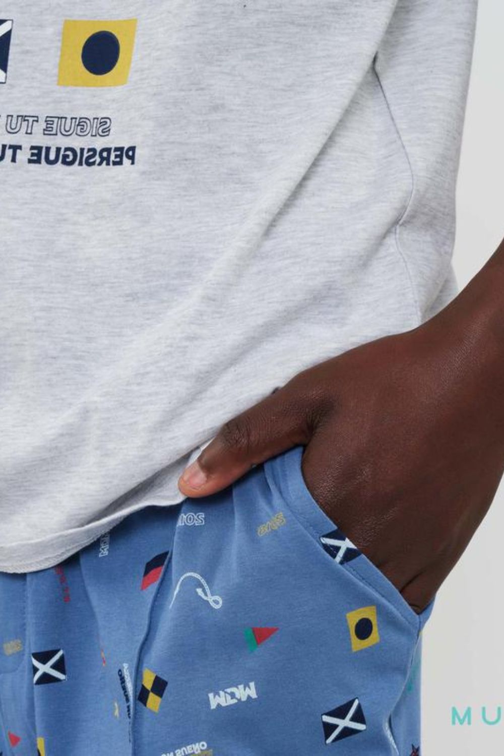 Ανδρική Πιτζάμα MuyDemi κοντομάνικη με στάμπα. Κοντό παντελόνι με all-over σχέδιο και λάστιχο στη μέση.