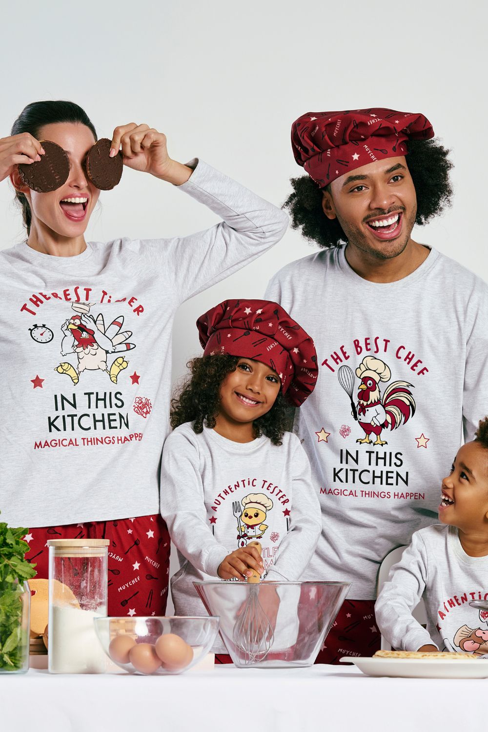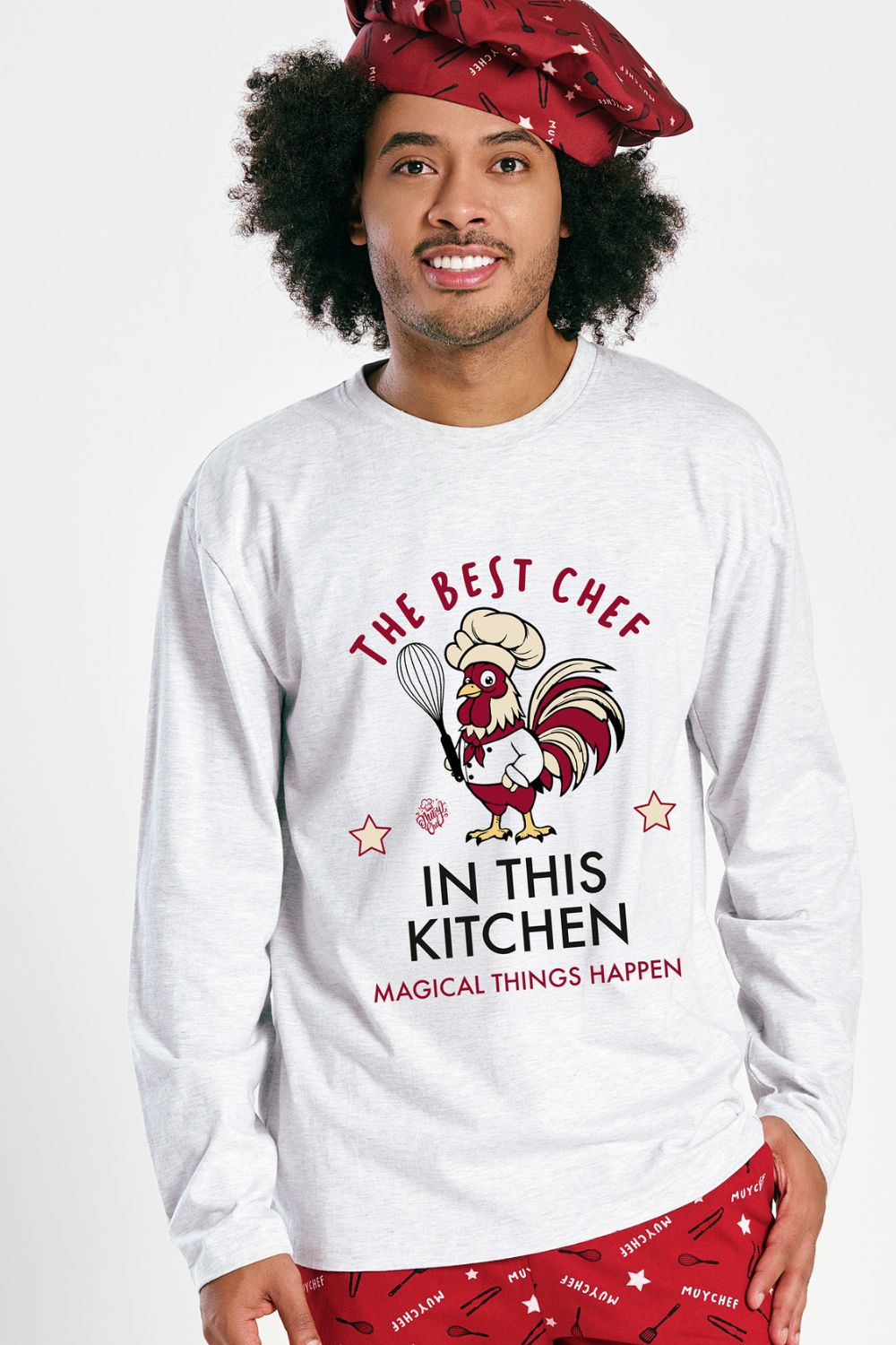 Η ανδρική πιτζάμα Muydemi “Muychef” συνδυάζει την άνεση με την αίσθηση χιούμορ στην κουζίνα! Η μπλούζα, με το αστείο μήνυμα “The best chef in this kitchen” και τον κόκορα, προσφέρει μια παιχνιδιάρικη νότα, ενώ το παντελόνι διαθέτει all-over σχέδιο με κουζινικά αξεσουάρ. Το παντελόνι διαθέτει κορδόνι στη μέση, τσέπες και λάστιχο στους αστραγάλους για άνεση και πρακτικότητα. Η σύνθεση από 98% βαμβάκι και 2% πολυεστέρα εξασφαλίζει άνεση και ανθεκτικότητα, ενώ στο σετ περιλαμβάνει και σκουφάκι μαγειρικής για πλήρη «μαγειρική» εμφάνιση!