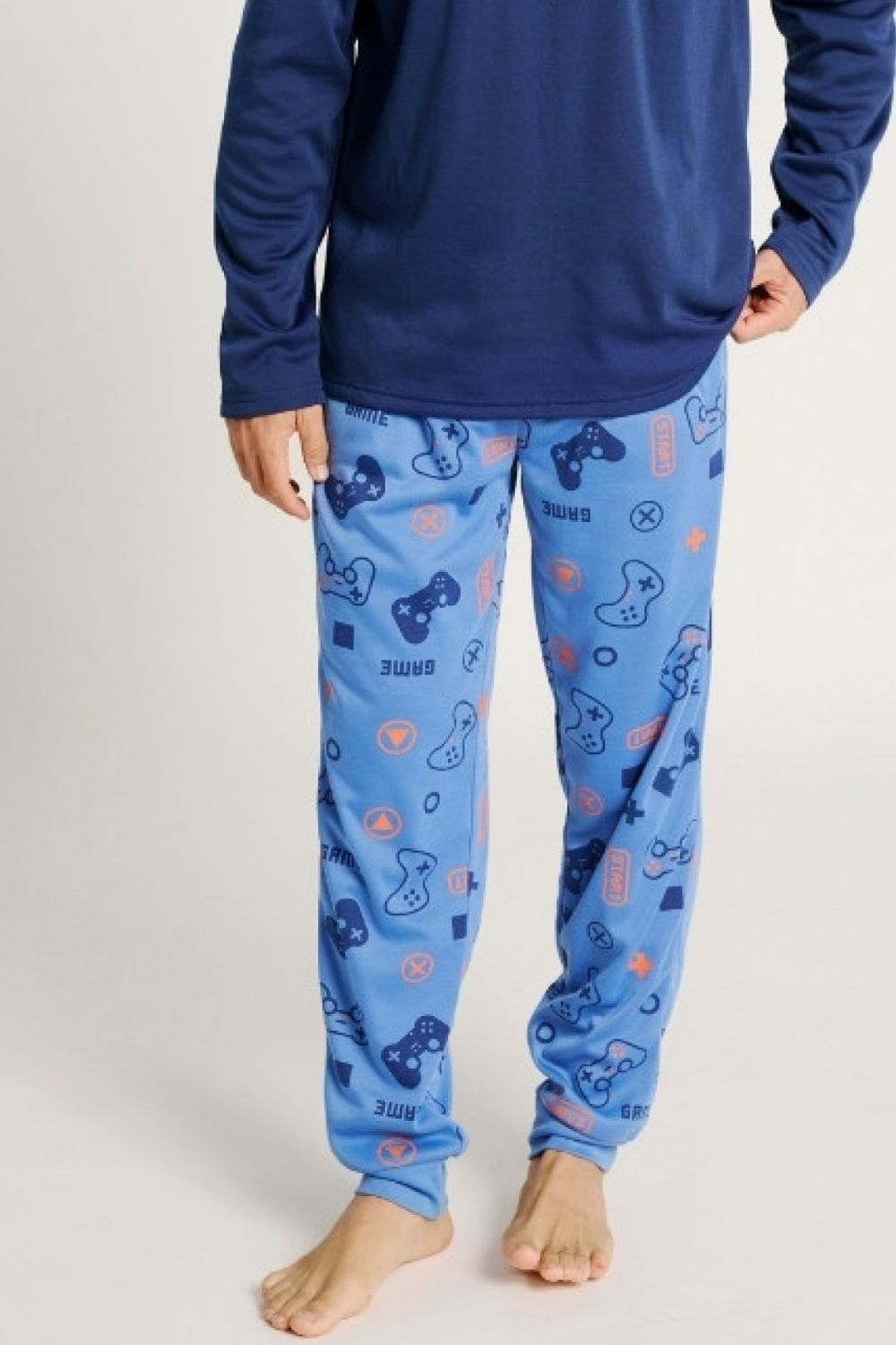 Η ανδρική πιτζάμα Muydemi “Start” συνδυάζει άνεση και στυλ για τις πιο χαλαρές στιγμές σας! Η μπλούζα με επένδυση και τσέπη στο στήθος προσφέρει ζεστασιά και πρακτικότητα, ενώ το παντελόνι με το all-over σχέδιο προσθέτει έναν δυναμικό και παιχνιδιάρικο χαρακτήρα στην εμφάνιση. Το κορδόνι στη μέση και οι τσέπες προσφέρουν επιπλέον άνεση και ευχέρεια κινήσεων, ενώ το λάστιχο στους αστραγάλους εξασφαλίζει τέλεια εφαρμογή. Ιδανική για τις στιγμές χαλάρωσης ή για να ξεκινήσετε τις βραδινές σας περιπέτειες με στυλ και άνεση!