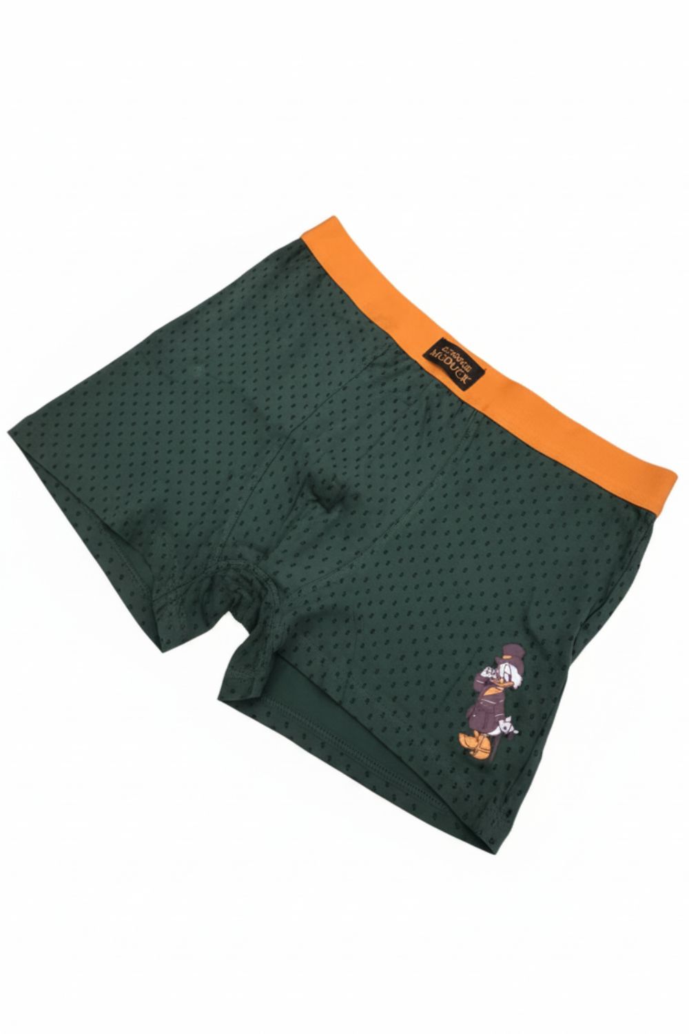 Αποκτήστε τον αγαπημένο σας Σκρουτζ Μακ Ντακ σε μποξεράκι. Με πράσινο χρώμα, σχέδια με σύμβολα δολαρίου και έντονο χρυσό λάστιχο μέσης, αυτό το μποξεράκι συνδυάζει τέλεια την υψηλή ποιότητα και την άνεση. Η συσκευασία δώρου το καθιστά ιδανικό για ένα πρωτότυπο και χιουμοριστικό δώρο.