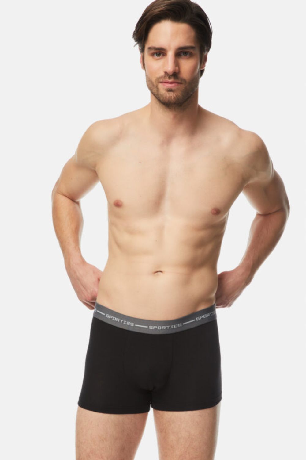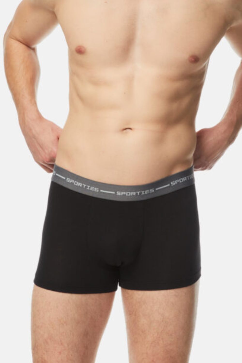 Ανδρικό μποξεράκι με κανονική εφαρμογή της σειράς sporties bamboo. Κατασκευάζεται από bamboo, βαμβάκι και ένα μικρό ποσοστό ελαστάν. Χάρη στις αντιβακτηριδιακές του ιδιότητες του bamboo, εξουδετερώνεται η κακοσμία και ο ιδρώτας απορροφάται. Το ύφασμα είναι πολύ ελαστικό, ανθεκτικό και άνετο. Ιδανικό για καθημερινή χρήση ή και έντονη αθλητική δραστηριότητα. Διαθέτει εξωτερικό λάστιχο μέσης για ακόμα καλύτερη εφαρμογή, με λογοτύπηση sporties. Πωλείται σε συσκευασία δύο τεμαχίων.