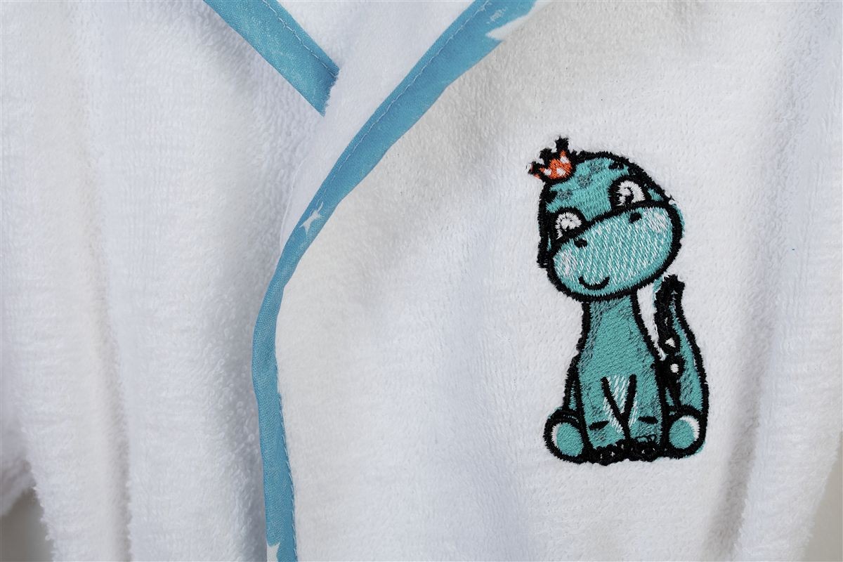 Μπουρνούζι Με Κέντημα kids Dinosaur 180 Size: 02 White-Sky Blue 100% Cotton