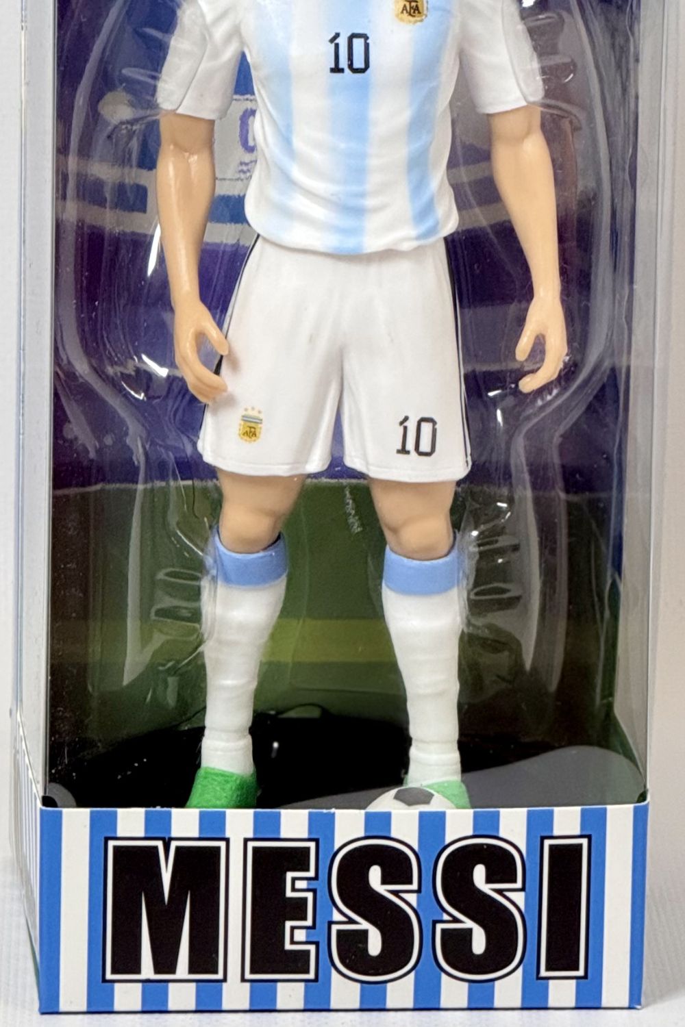 Φιγούρα του θρυλικού ποδοσφαιριστή Lionel Messi, ντυμένη με την εμβληματική στολή  τον χαρακτηριστικό αριθμό 10. Κατασκευασμένη με προσοχή στη λεπτομέρεια, αποτελεί ιδανική επιλογή για μικρούς και μεγάλους φίλους του ποδοσφαίρου, αλλά και για συλλέκτες. Η φιγούρα έρχεται σε εντυπωσιακή συσκευασία, κατάλληλη για δώρο, και μπορεί να διακοσμήσει οποιονδήποτε χώρο, προσθέτοντας μια αθλητική και δυναμική πινελιά.