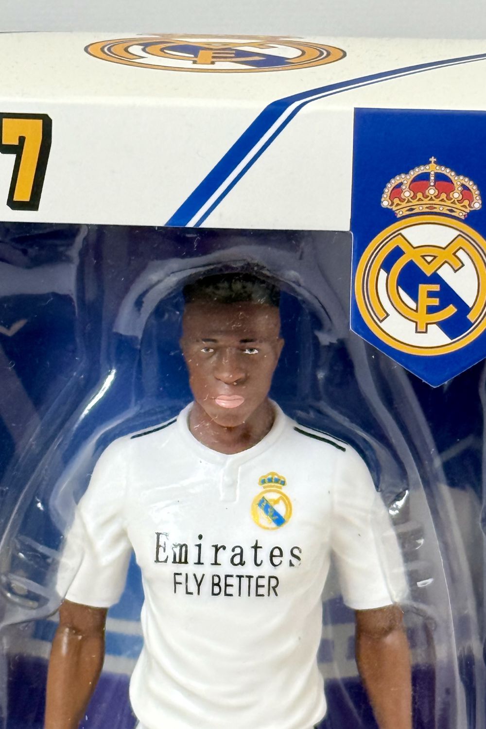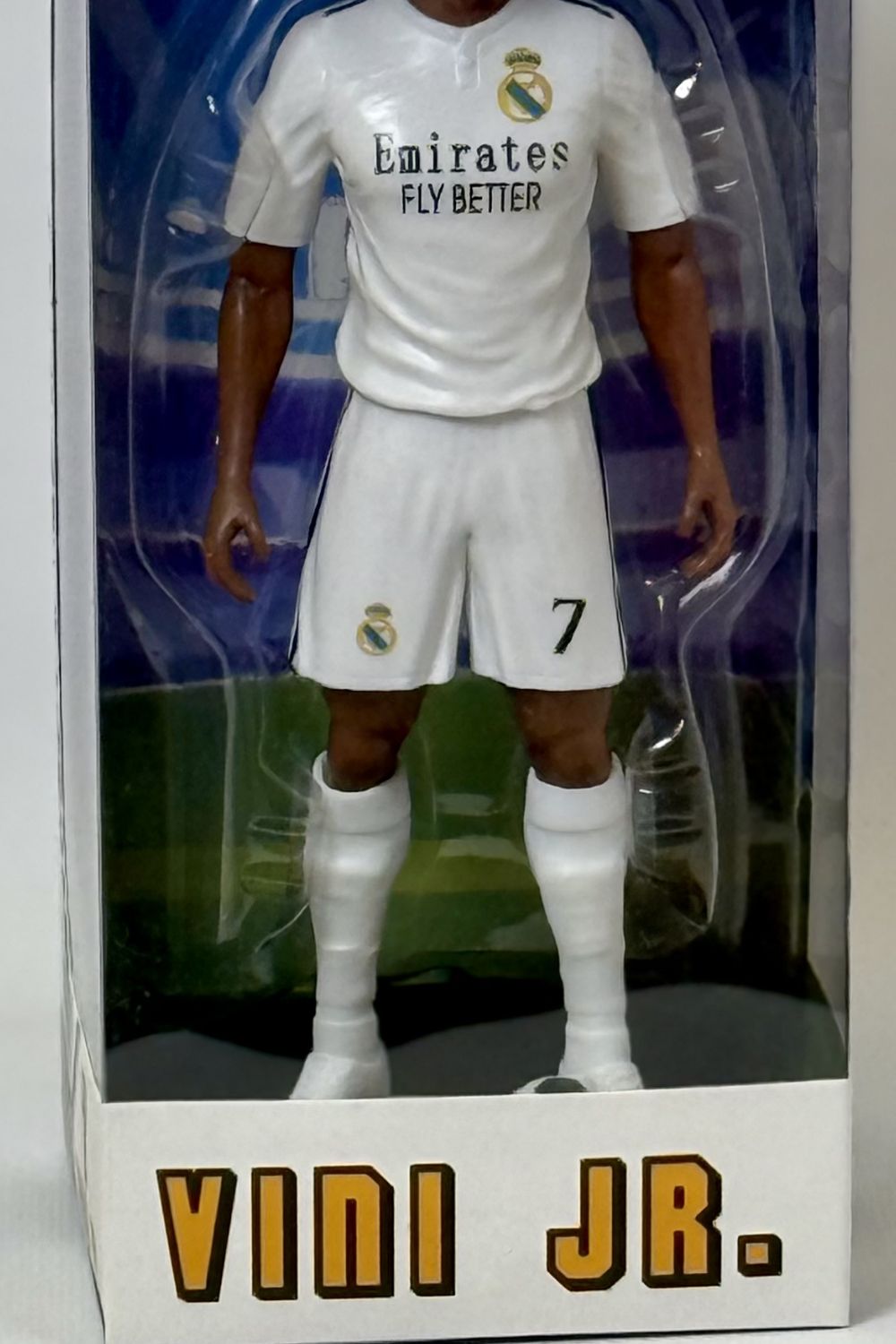 Αυτή η συλλεκτική φιγούρα του Vinicius Junior αποτελεί το ιδανικό δώρο για κάθε οπαδό της Real Madrid, αποτυπώνοντας τον κορυφαίο Βραζιλιάνο άσο με την εμβληματική λευκή εμφάνιση και τον αριθμό 7.