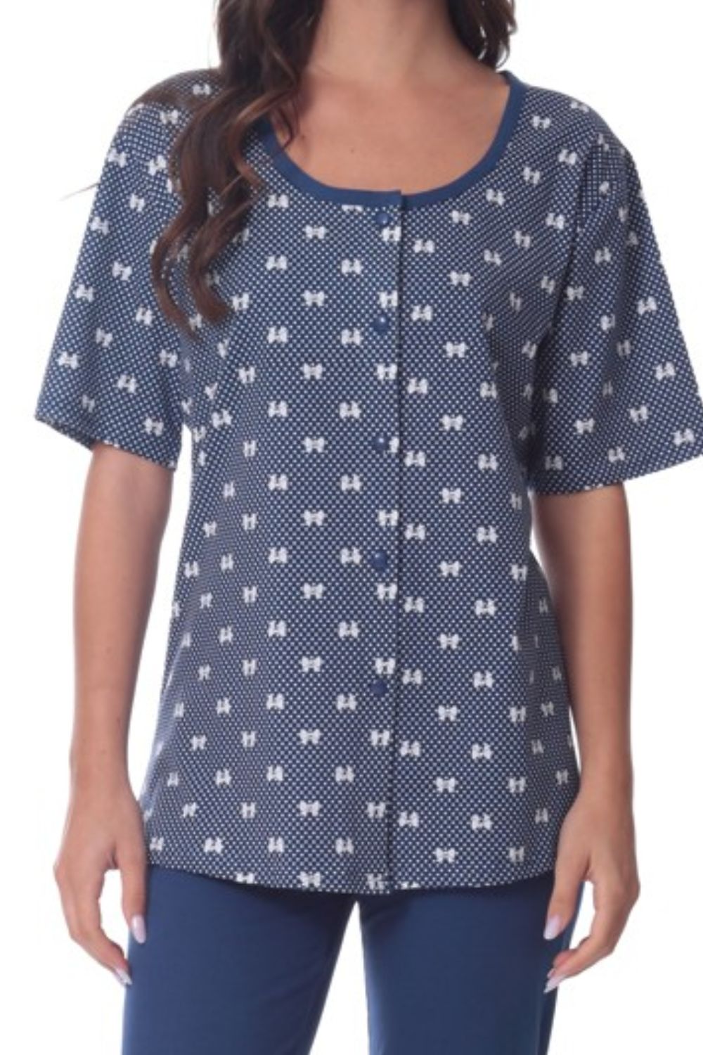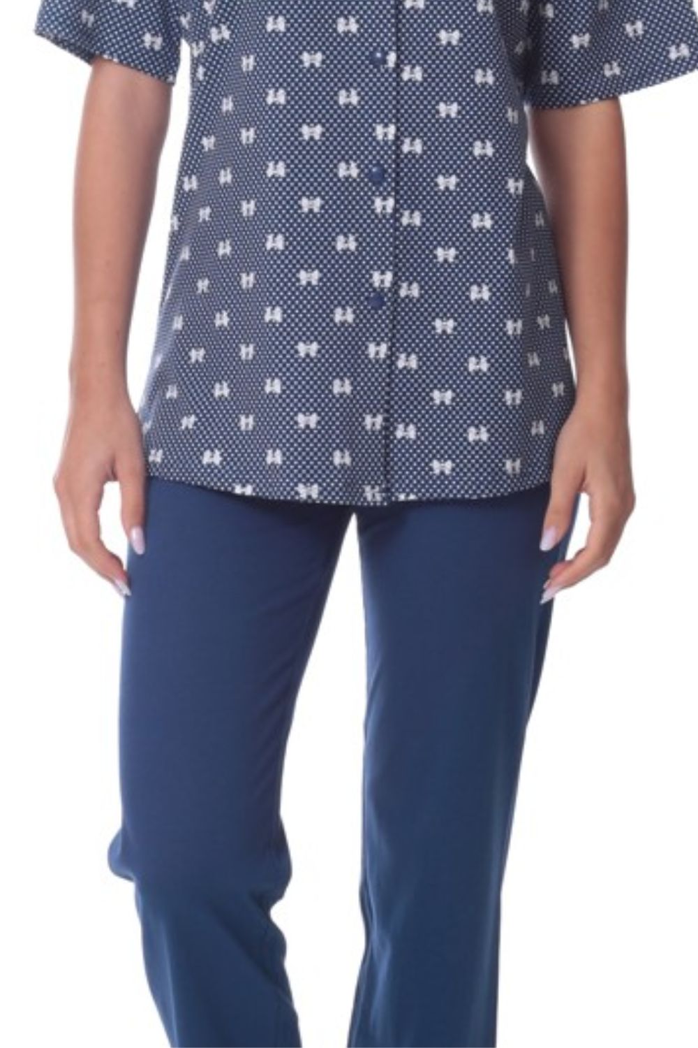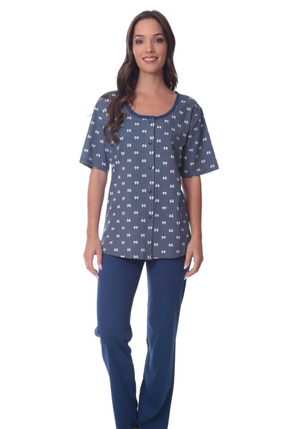 Γυναικεία Πιτζάμα Κοντομάνικη Με Κουμπιά Και Μακρύ Παντελόνι