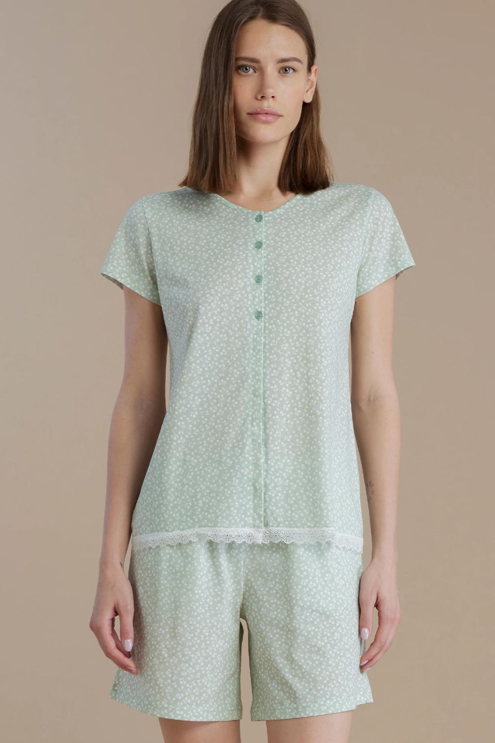 Γυναικεία Πιτζάμα Noidinotte “Cherry Bloom” με Λεπτή Στάμπα Κερασιού, σε Παντελόνι και Μπλούζα. Η μπλούζα είναι κοντομάνικη, με κουμπιά και δαντελένιο τελείωμα για μια ρομαντική και κομψή αίσθηση. Το σορτς έχει all-over σχέδιο με την ίδια στάμπα κερασιού και πρακτικές πλαϊνές τσέπες για επιπλέον άνεση. Φτιαγμένη από 100% βαμβάκι, αυτή η πιτζάμα συνδυάζει στυλ και άνεση, προσφέροντας μια απαλή αίσθηση στην επιδερμίδα και είναι η ιδανική επιλογή για τις νύχτες σας στο σπίτι.