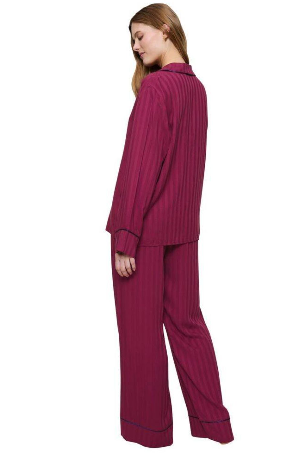 Η γυναικεία πιτζάμα Triumph “Amourette Jacquard PW” συνδυάζει κομψότητα και άνεση, προσφέροντάς σας μια πολυτελή εμπειρία χαλάρωσης. Η μπλούζα διαθέτει κουμπιά σε όλο το μήκος και κλασικό γιακά, προσδίδοντας διαχρονικό και εκλεπτυσμένο στυλ, ενώ το παντελόνι με κορδόνι στη μέση και πλαϊνές τσέπες εξασφαλίζει άψογη εφαρμογή και πρακτικότητα. Κατασκευασμένη από 100% βισκόζ, με απαλό και χυτό ριγέ jacquard ύφασμα, αυτή η πιτζάμα χαρίζει μοναδική αίσθηση απαλότητας και ελευθερίας κινήσεων, ιδανική για άνετες και στυλάτες νύχτες.