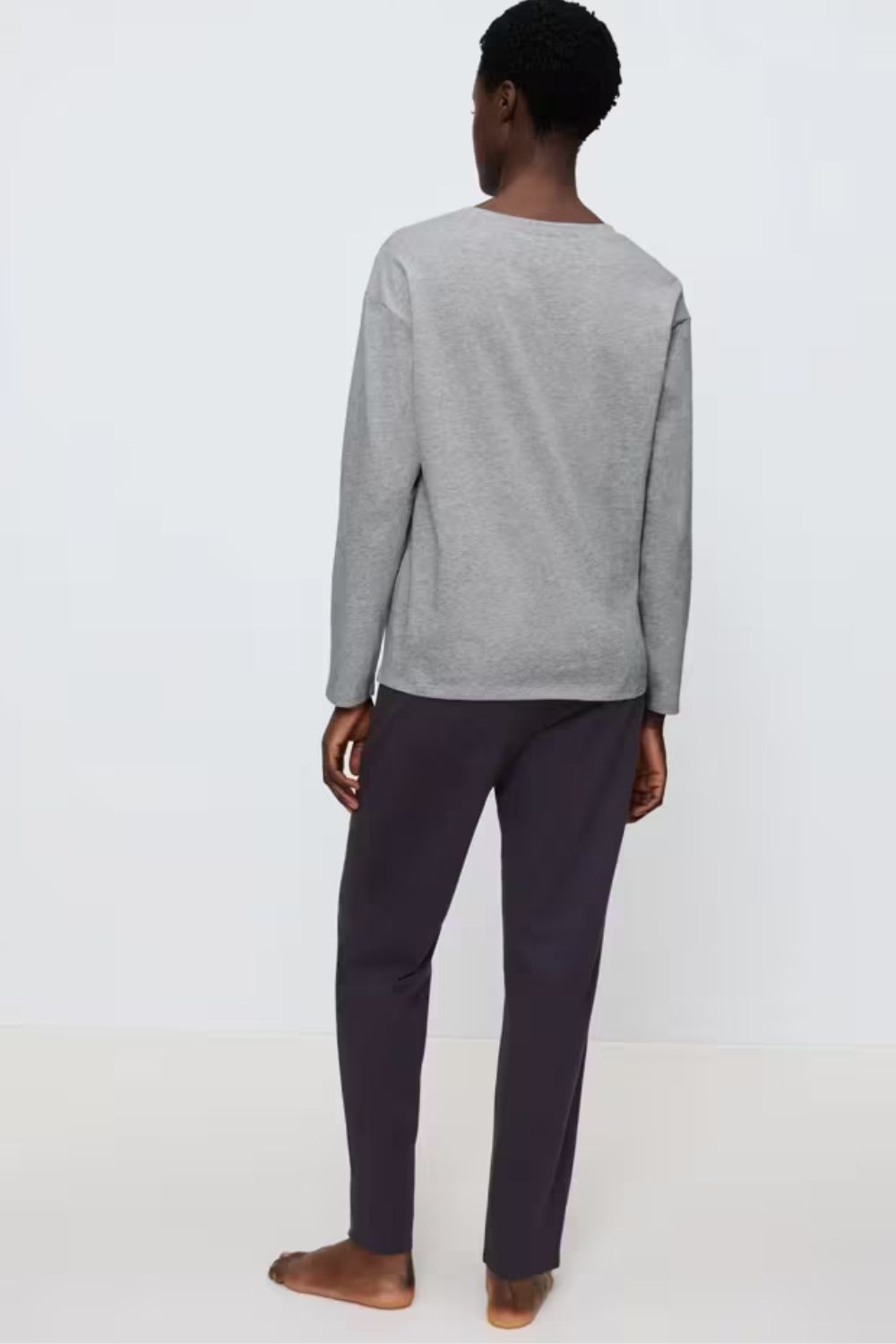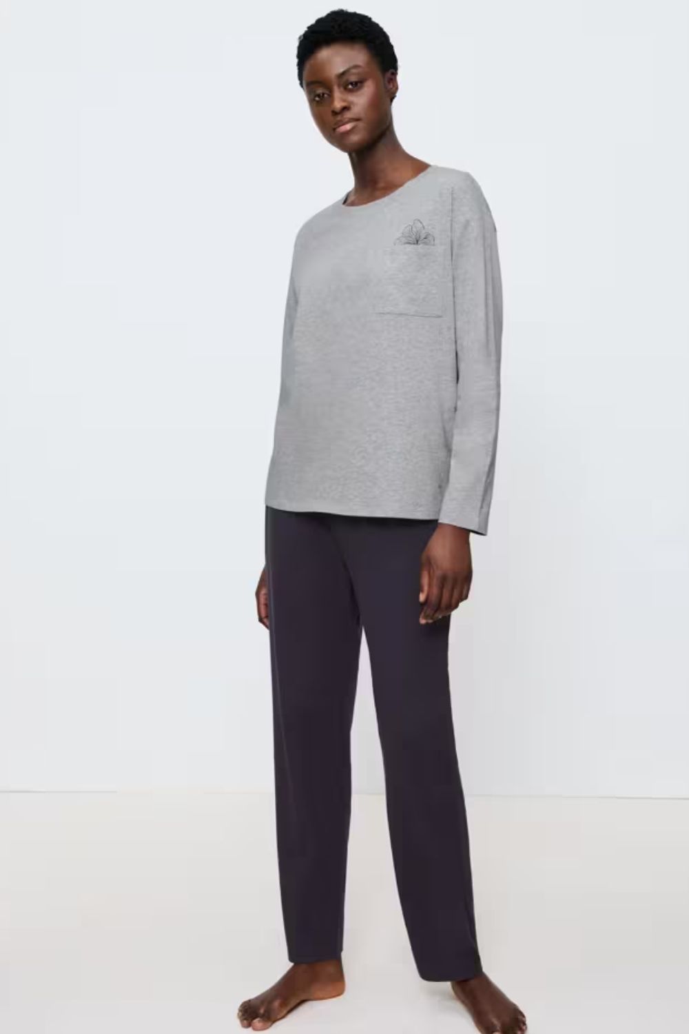 Η Γυναικεία Πιτζάμα Triumph Sets PK 01 LSL είναι το τέλειο σετ για άνεση και στυλ κατά τη διάρκεια της νύχτας. Το σετ αποτελείται από μια μονόχρωμη, μακρυμάνικη μπλούζα με ένα διακριτικό τσεπάκι στο στήθος για μία κομψή λεπτομέρεια, και παντελόνι σε ίσια γραμμή με πλαϊνές τσέπες και ελαστική μέση για τέλεια εφαρμογή και ελευθερία κινήσεων. Κατασκευασμένο από 100% βαμβάκι, το υλικό είναι απαλό και αναπνεύσιμο, εξασφαλίζοντας απόλυτη άνεση όλη τη διάρκεια της νύχτας. Ιδανικό για όσες αναζητούν έναν συνδυασμό πρακτικότητας και στυλ στις πιτζάμες τους!