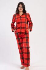 Γυναικεία Πιτζάμα Vienetta Fleece Καρό Με Κουμπιά
