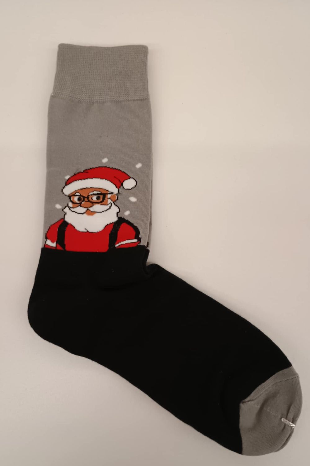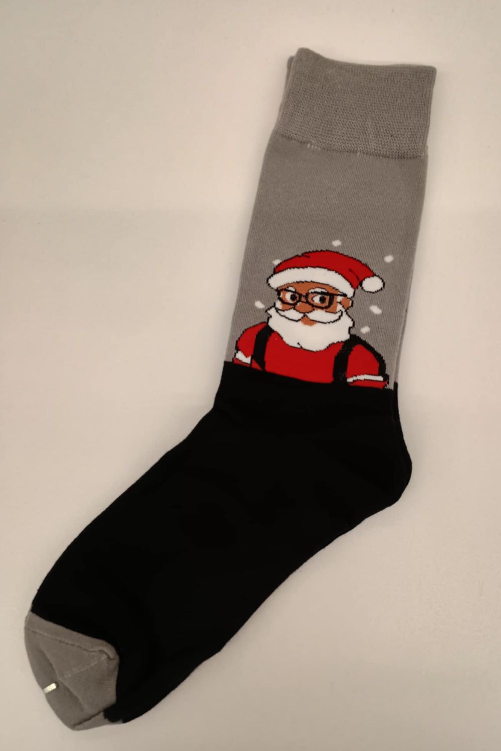 Αυτές οι ξεχωριστές γυναικείες κάλτσες έχουν μια μοντέρνα σχεδίαση. Το κεντρικό τους μοτίβο είναι ένας χαριτωμένος Άγιος Βασίλης που φοράει γυαλιά και εμφανίζεται πάνω από τη μαύρη ζώνη της κάλτσας με τιράντες, προσθέτοντας χιούμορ και μια σκανδιναβική αισθητική. Είναι η ιδανική επιλογή για τις γιορτές, προσφέροντας άνεση και ένα μοναδικό, ευχάριστο στυλ.