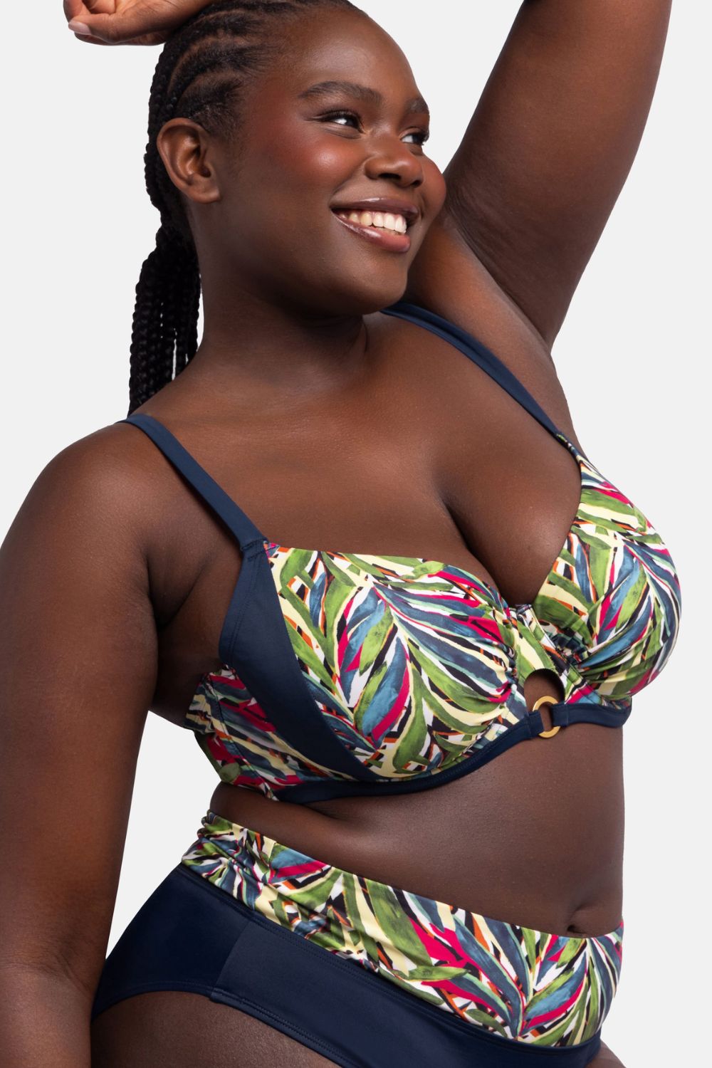 Το γυναικείο μαγιό DORINA Bikini Top “Kofar Mata” Cup E είναι η ιδανική επιλογή για γυναίκες που αναζητούν στυλ και άνεση στην παραλία ή την πισίνα. Σχεδιασμένο ειδικά για μεγαλύτερο μπούστο, προσφέρει άψογη υποστήριξη χάρη στην μπανέλα και τη σταθερή βάση στήριξης. Οι ρυθμιζόμενες τιράντες, οι οποίες μπορούν να φορεθούν και χιαστί χάρη στον ειδικό γάντζο, προσαρμόζονται εύκολα στις ανάγκες σας, προσφέροντας άνεση και σταθερότητα. Το κλείσιμο με κόπιτσα στην πλάτη εξασφαλίζει ασφαλές κράτημα, ενώ το τύπωμα χαρίζει μοναδικό στυλ. Ένα κομψό και πρακτικό κομμάτι για ξεχωριστές εμφανίσεις στην παραλία.