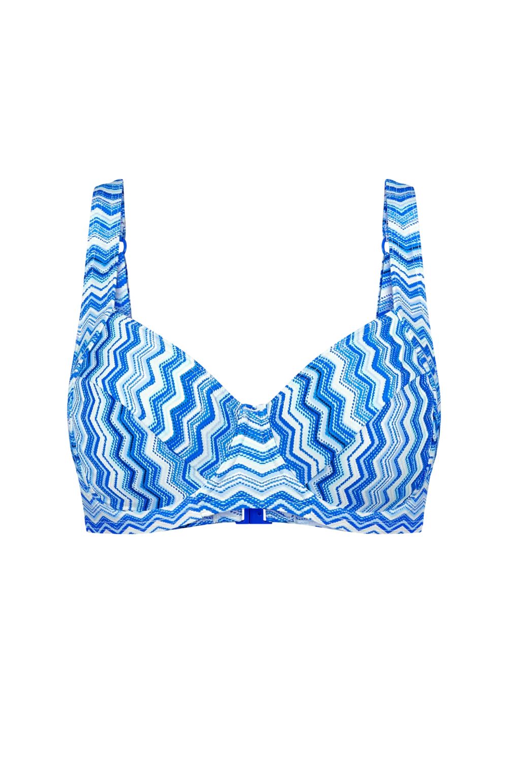 Απογειώστε τις εμφανίσεις σας στην παραλία με το γυναικείο bikini top Triumph Mix & Match Summer W με μπανέλα. Σχεδιασμένο για άψογη στήριξη και κομψή εφαρμογή, διαθέτει cups με μπανέλα που αγκαλιάζουν το στήθος και προσφέρουν φυσικό σχήμα και σταθερότητα. Οι φαρδιές τιράντες ενισχύουν την άνεση, ενώ το εντυπωσιακό μοτίβο με κυματιστές γραμμές σε μπλε αποχρώσεις χαρίζει μοντέρνο και καλοκαιρινό χαρακτήρα. Το ύφασμα είναι ελαστικό και ανθεκτικό στο νερό και τον ήλιο, εξασφαλίζοντας μεγάλη διάρκεια και τέλεια εφαρμογή. Ιδανικό για να συνδυαστεί με τα αντίστοιχα bikini bottoms της σειράς για ένα ολοκληρωμένο και στυλάτο mix & match αποτέλεσμα.