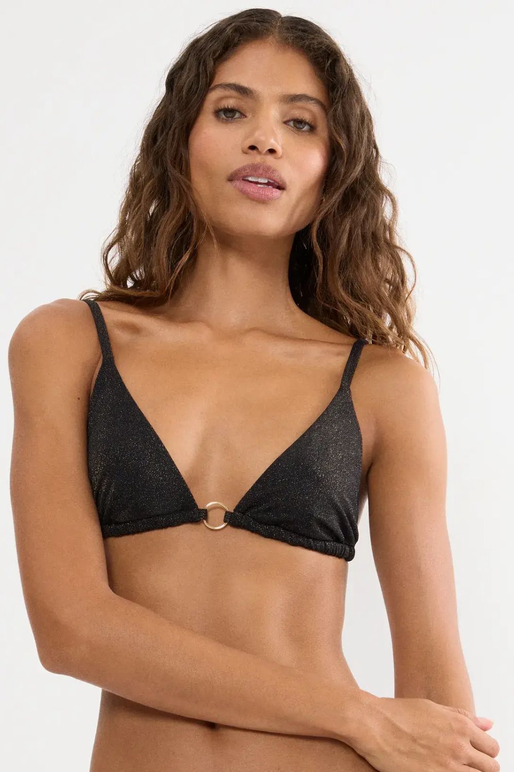 Το γυναικείο bikini top Triumph Summer Sunset N συνδυάζει κομψότητα και άνεση, αποτελώντας ιδανική επιλογή για τις καλοκαιρινές εμφανίσεις στην παραλία ή την πισίνα. Διαθέτει τριγωνικό σχέδιο με διακριτικό μεταλλικό κρίκο στο κέντρο που προσθέτει μια μοντέρνα πινελιά, ενώ οι λεπτές τιράντες και το δέσιμο στην πλάτη εξασφαλίζουν τέλεια εφαρμογή και προσαρμογή στο σώμα. Το ύφασμά του είναι απαλό και ελαστικό, προσφέροντας άνεση και σταθερότητα καθ’ όλη τη διάρκεια της ημέρας. Η διαχρονική του γραμμή το καθιστά εύκολο να συνδυαστεί με διάφορα bikini bottoms, δημιουργώντας ένα στυλάτο και θηλυκό σύνολο.