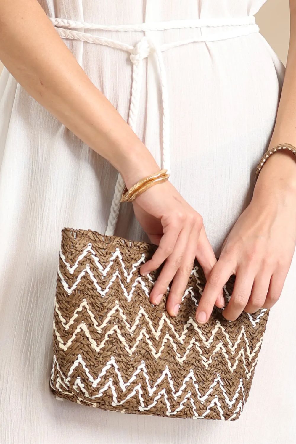 Αναβάθμισε τις καλοκαιρινές σου εμφανίσεις με το κομψό νεσεσέρ θαλάσσης NOIDINOTTE, σχεδιασμένο σε μοντέρνο μοτίβο ζιγκ-ζαγκ που συνδυάζει φυσικές και λευκές αποχρώσεις. Ειναι ψάθινο, ελαφρύ αλλά και πρακτικό, ιδανικό για να αποθηκεύεις με ασφάλεια τα απαραίτητα της παραλίας ή της καθημερινότητάς σου. Διαθέτει κλείσιμο με φερμουάρ για μεγαλύτερη ασφάλεια και διαστάσεις 30×20 εκ., προσφέροντας τον ιδανικό χώρο χωρίς να χάνει τη minimal αισθητική του. Ένα στιλάτο αξεσουάρ που συνδυάζει λειτουργικότητα και καλοκαιρινό χαρακτήρα.