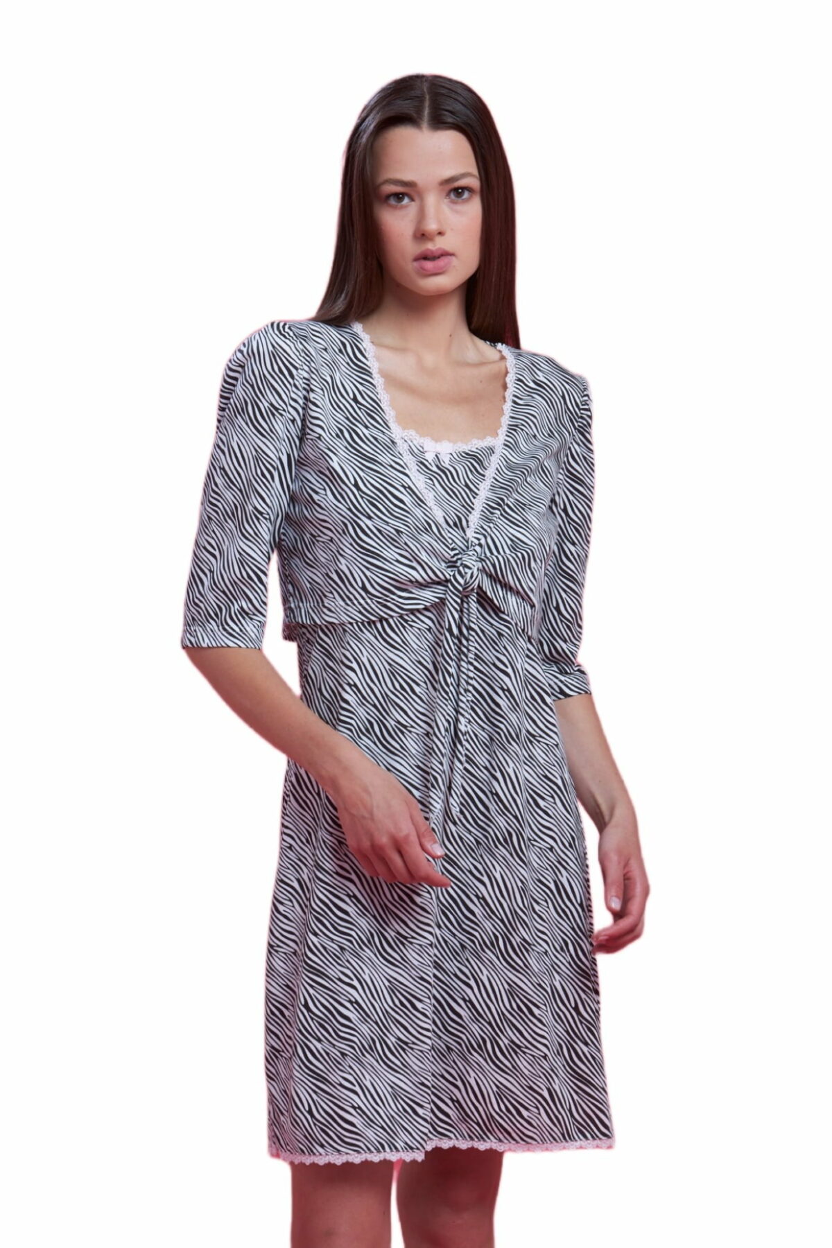 Γυναικείο Νυχτικό NODINOTTE “Zebra”. Καλοκαιρινό με τιραντάκι και all-over print και ζακετάκι μπολερό.