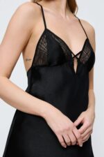 Αναδείξτε τη θηλυκότητά σας με το γυναικείο νυχτικό Triumph A Weekend to Remember NDW, μια κομψή και αισθησιακή επιλογή από πολυτελές σατέν ύφασμα. Διαθέτει βαθιά πλάτη με σταυρωτές τιράντες που προσφέρουν εκλεπτυσμένο και θηλυκό στυλ, ενώ η δαντέλα σε επιλεγμένα σημεία του μπούστου χαρίζει ρομαντική και φίνα πινελιά. Τα μεταλλικά αξεσουάρ ολοκληρώνουν το σχέδιο με διακριτική λάμψη, προσθέτοντας μια νότα πολυτέλειας. Ιδανικό για ιδιαίτερες στιγμές ή για να απολαμβάνετε άνεση και κομψότητα κάθε βράδυ.