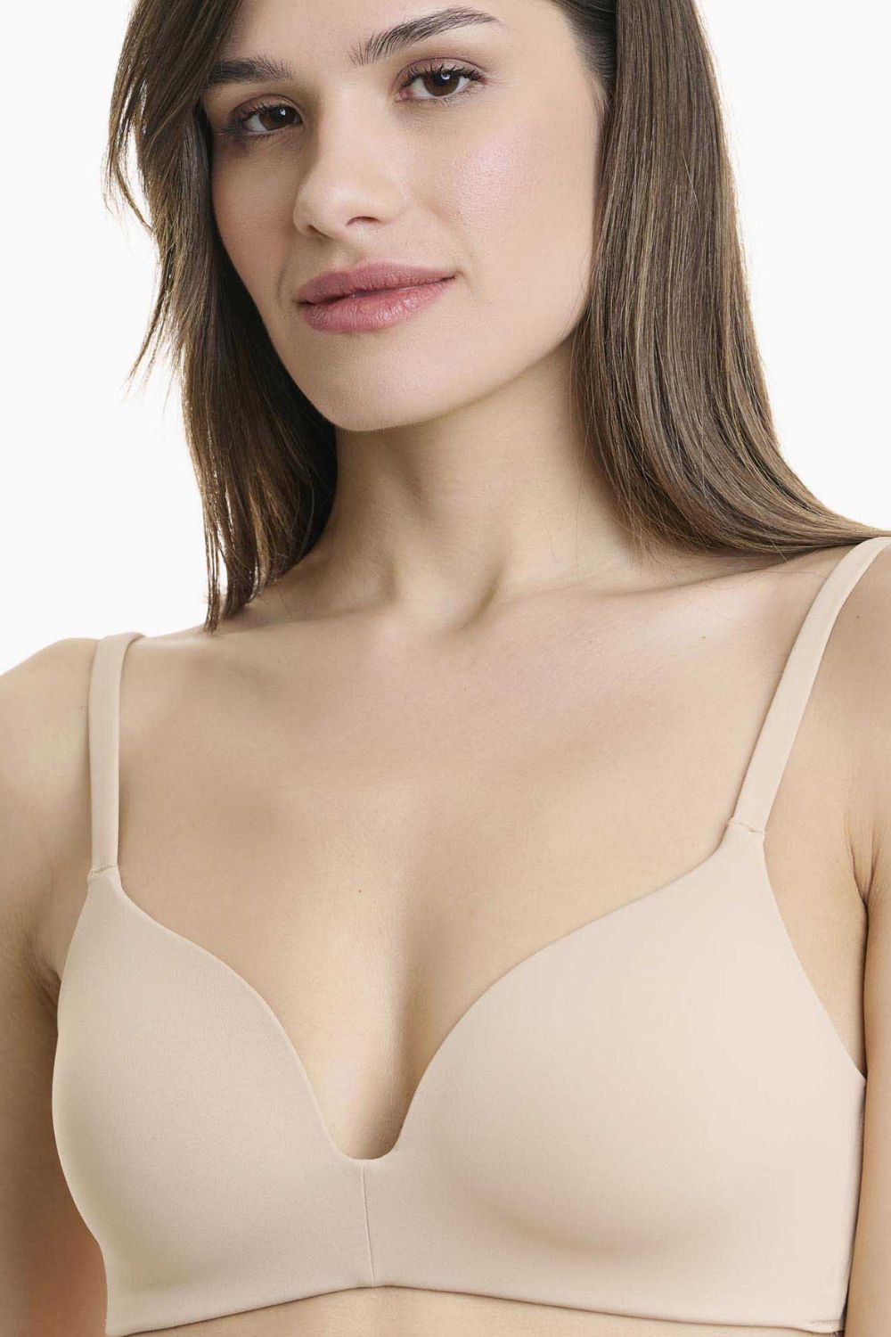 Seamless γυναικείο σουτιέν χωρίς μπανέλα με επένδυση, που χαρίζει φυσικό σχήμα και άνετη εφαρμογή. Χάρη στο απαλό, ελαστικό ύφασμα μικροϊνών, αγκαλιάζει το σώμα και ακολουθεί κάθε κίνηση, προσφέροντας μοναδική αίσθηση ελευθερίας. Οι αόρατες ραφές το καθιστούν ιδανικό κάτω από εφαρμοστά ρούχα, εξασφαλίζοντας απόλυτη διακριτικότητα χωρίς γραμμές. Διαθέτει ελαφρώς ενισχυμένες cups, ρυθμιζόμενες τιράντες και κούμπωμα με κόπιτσες τεσσάρων θέσεων στην πλάτη. Ένα πρακτικό και κομψό εσώρουχο για κάθε μέρα.