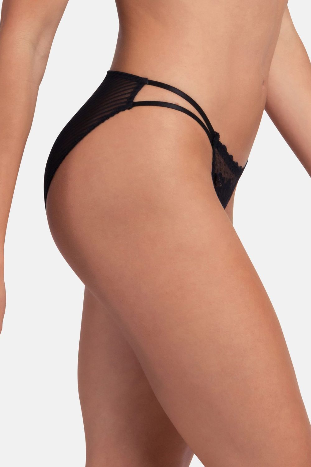 Το γυναικείο σλιπ Skylar συνδυάζει κομψότητα και θηλυκότητα με μοναδικό στυλ. Το μπροστινό του μέρος είναι διακοσμημένο με απαλή δαντέλα προσφέροντας εκλεπτυσμένη αισθητική, ενώ το πίσω μέρος ξεχωρίζει με ριγέ διάφανο ύφασμα, δημιουργόντας μια μοντέρνα και σαγηνευτική εμφάνιση.