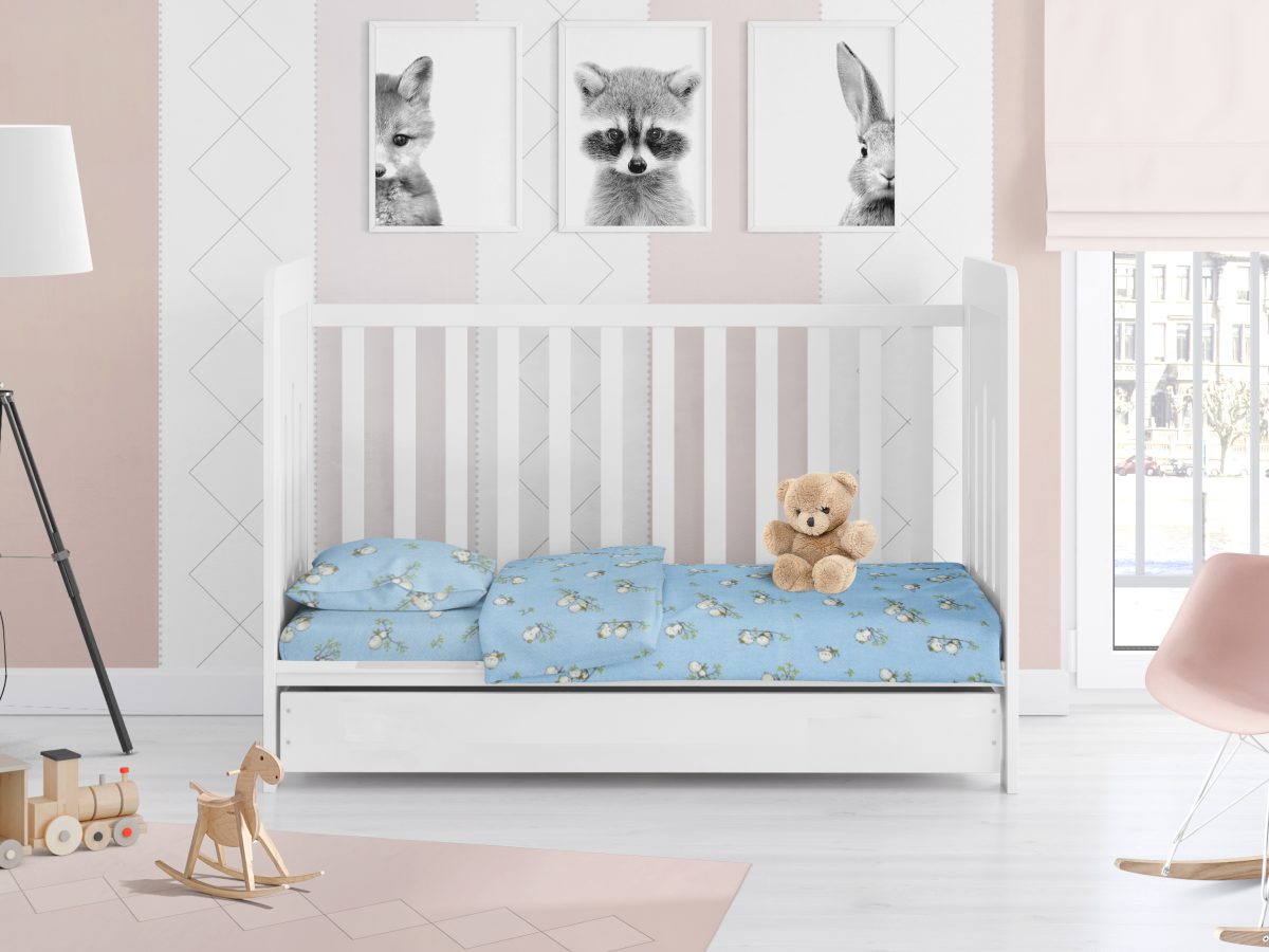 Βρεφικά Σεντονάκια 120Χ160 κούνιας 2 τεμ. και μαξιλαροθηκη 35Χ45 1 τεμ,100% βαμβακι ποιοτητα Φανέλλα TC 144 Εμπριμέ με χαρούμενα χρώματα και παραστάσεις-Συσκευασία Δώρου Κουτί Πολυτελείας