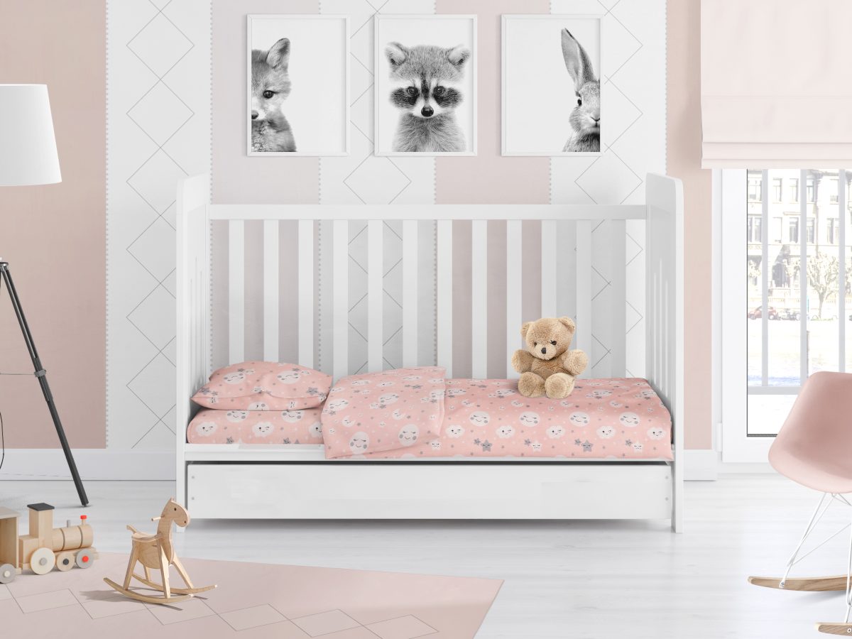 Σετ 3 τεμαχίων που περιέχει: Βρεφικά Σεντονάκια 120Χ160 κούνιας 2 τεμ. και 1 τεμ Μαξιλαροθηκη 35Χ45.Ύφασμα βαμβακι 100% TC 144 Εμπριμέ με χαρούμενα χρώματα και παραστάσεις-Συσκευασία Δώρου Κουτί Πολυτελείας