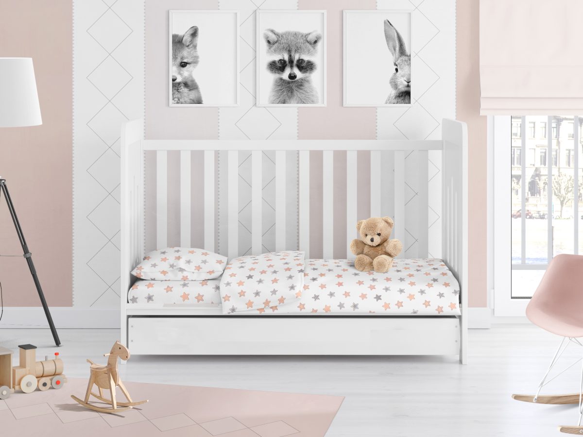 Σετ 3 τεμαχίων που περιέχει: Βρεφικά Σεντονάκια 120Χ160 κούνιας 2 τεμ. και 1 τεμ Μαξιλαροθηκη 35Χ45.Ύφασμα βαμβακι 100% TC 144 Εμπριμέ με χαρούμενα χρώματα και παραστάσεις-Συσκευασία Δώρου Κουτί Πολυτελείας