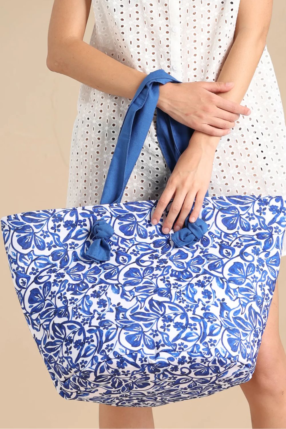 Γυναικεία τσάντα θαλάσσης NOIDINOTTE “Floral”, μια κομψή και πρακτική επιλογή για τις καλοκαιρινές σας εμφανίσεις. Κατασκευασμένη από ανθεκτικό ύφασμα με εντυπωσιακό μπλε φλοράλ τύπωμα, προσφέρει στιλ και φρεσκάδα σε κάθε σας έξοδο. Είναι ιδιαίτερα ευρύχωρη, ιδανική για να χωρέσει όλα τα απαραίτητα για την παραλία, ενώ το πρακτικό κλείσιμο με φερμουάρ εξασφαλίζει την ασφάλεια των προσωπικών σας αντικειμένων. Με διαστάσεις 58 x 35 x 38 εκ., αποτελεί την ιδανική επιλογή για άνεση και λειτουργικότητα όλη μέρα.