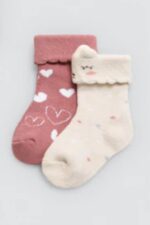 Λατρεμένες βρεφικές κάλτσες για κορίτσια Ysabel Mora “Hearts” (2 Pack), σχεδιασμένες για να προσφέρουν απόλυτη άνεση, ζεστασιά και στυλ στα μικρά ποδαράκια! Το σετ περιλαμβάνει δύο ζευγάρια: το ένα με γλυκό σχέδιο καρδούλες και το άλλο με κομψό πουά μοτίβο. Κατασκευασμένες από θερμικό ύφασμα, προσφέρουν προστασία από το κρύο και απαλή εφαρμογή καθ’ όλη τη διάρκεια της ημέρας. Ένα υπέροχο σετ που συνδυάζει ποιότητα, πρακτικότητα και ρομαντική αισθητική, ιδανικό για κάθε μικρή πριγκίπισσα!