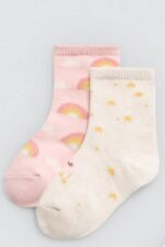 Χρώμα, απαλότητα και ζεστασιά σε κάθε βήμα! Το σετ Rainbowland περιλαμβάνει 2 ζευγάρια βρεφικές κάλτσες με γλυκά σχέδια, εμπνευσμένα από τον μαγικό κόσμο του ουράνιου τόξου. Ιδανικές για την καθημερινή άνεση του μωρού σας, με μαλακό ύφασμα που αγκαλιάζει απαλά τα ποδαράκια.